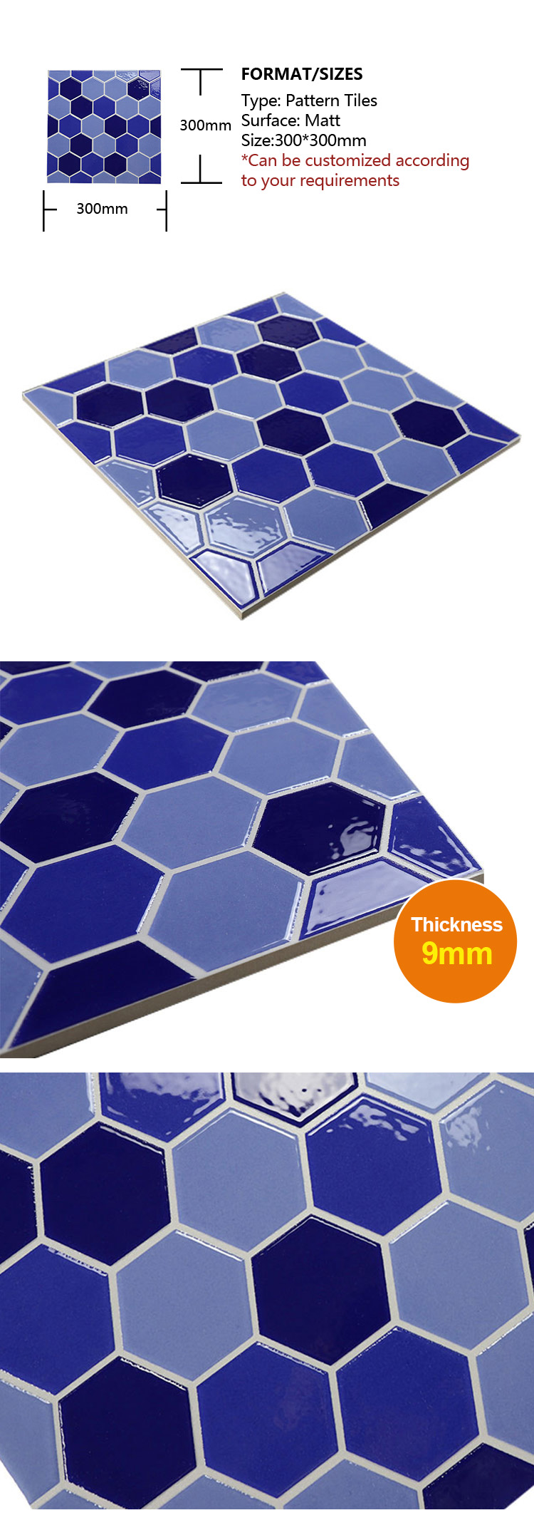 Custom Blue Hexagonal Patten Tiles For Wall