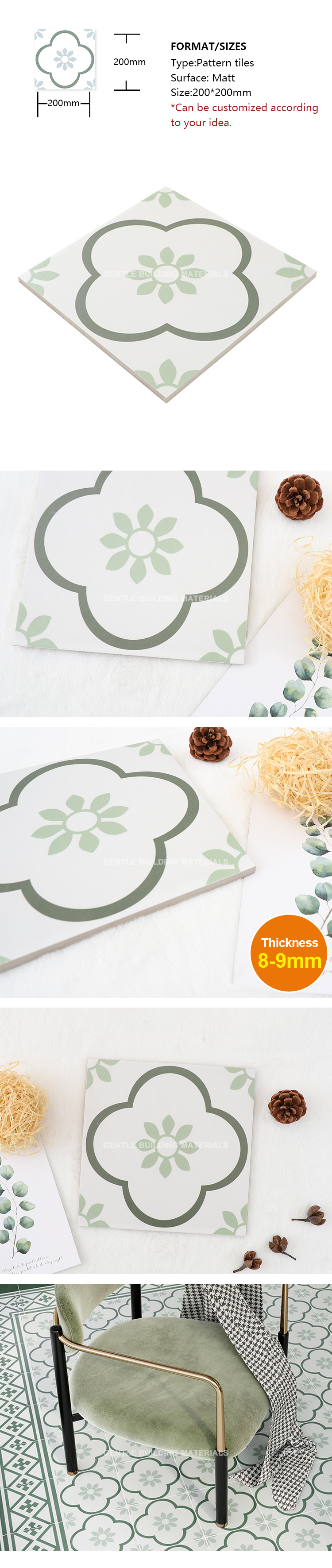 • Artistic Sophistication: Glazed with intricate patterns, these tiles offer a timeless and artistic elegance.